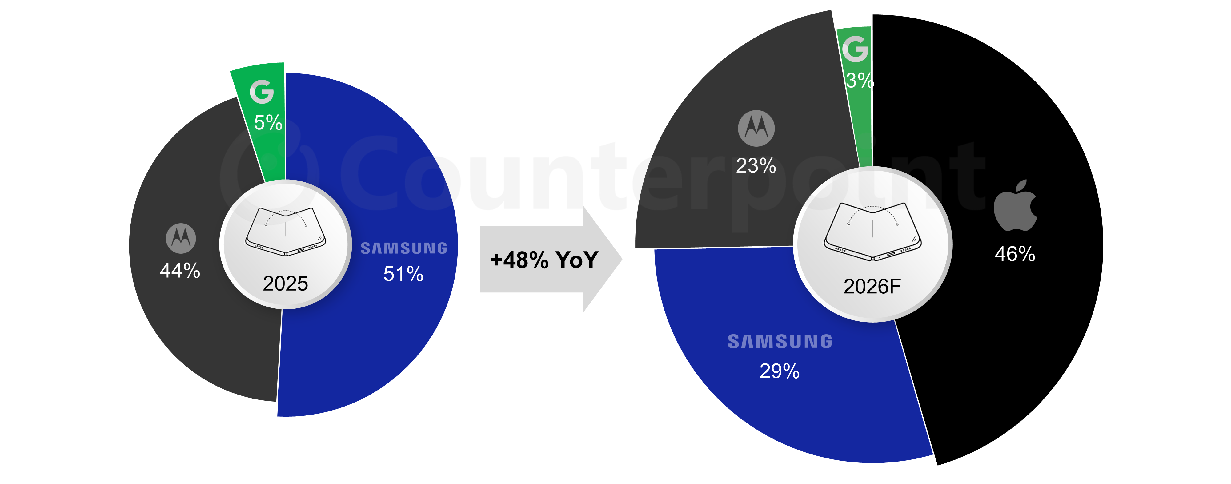 Volgens Counterpoint Research gaat dit succes van Apple vooral ten koste van Google en Motorola. Bij Google wordt een daling van 5 procent naar 3 procent verwacht, voor Motorola is dat zelfs een daling van 44 procent naar 23 procent. Voor Samsung heeft de lancering van de iPhone Ultra ook gevolgen, want Samsung verkoopt in 2025 maar liefst 51 procent van alle opvouwbare smartphones in Noord-Amerika. Dat aandeel loopt in 2026 terug naar slechts 29 procent, omdat de nieuwe iPhone Ultra volgens het rapport zo populair wordt.